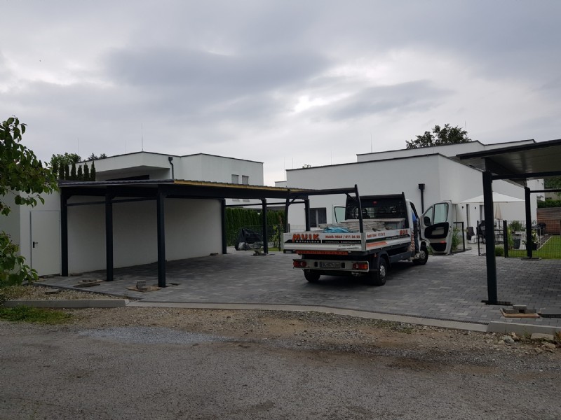 Carports aus Stahl, verzinkt und pulverbeschichtet. Wurden von uns geplant, angefertigt und montiert.